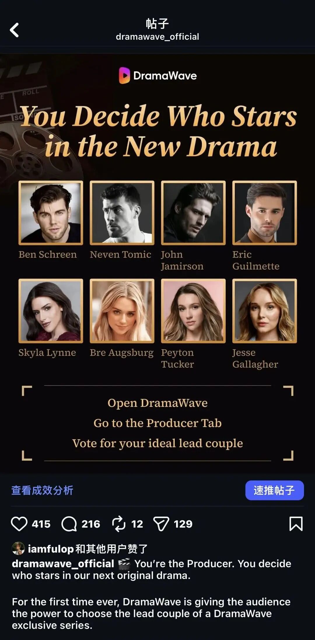 在注重传播广度的同时,DramaWave同样致力于与用户建立稳定的沟通机制,以提升品牌亲和力和用户粘性。平台一方面精心运营各大社交账号,及时回复用户评论、私信,认真听取观众反馈,让用户感受到官方的重视与陪伴;另一方面,定期举办各类互动活动。通过用心运营评论区、搭建粉丝群组并鼓励用户发声,平台逐步培养出高忠诚度的用户群,也进一步转化为持续的内容消费和口碑传播动力。